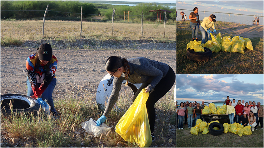 En el marco de la Segunda Jornada Nacional de Tequios y Murales en contra de las Adicciones, la presidenta municipal Laura Verónica Peña Martínez acompañó a las y los jóvenes y personas voluntarias convocados por el enlace municipal de la juventud, Josué Alfonso García Villarreal, en la actividad de saneamiento y recolección de residuos en el Parque Recreativo Nuevo Amanecer de la Presa Falcón.