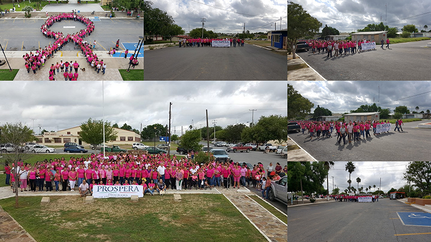 El día de hoy beneficiarios de los programas PROSPERA y PAL monetario realizaron una actividad apoyando y concientizando la sensibilización y fomentar la detección temprana del cáncer de mama.