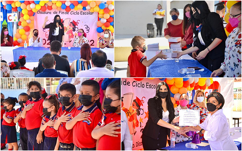 Por parte de la Directora del Plantel Educativo se realizó la entrega de un reconocimiento a la Presidente Municipal en el que expresan su agradecimiento por el apoyo que ha brindado a la institución educativa que representan.