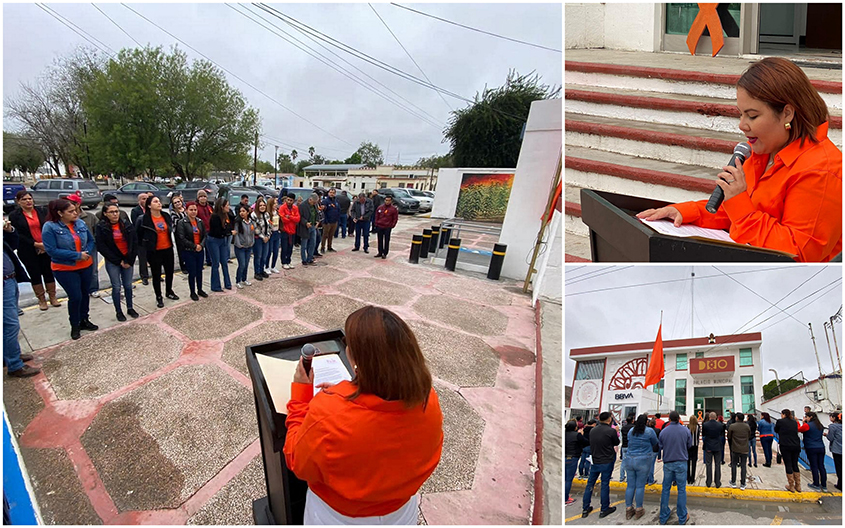 En el marco de las actividades del Mes Naranja, con motivo de la conmemoración del Día Internacional para la Eliminación de la Violencia contra las Mujeres y Niñas, el gobierno municipal que encabeza la presidenta Nataly García Díaz a través del Instituto Municipal de las Mujeres, llevó a cabo el izamiento de la bandera naranja como símbolo de apoyo y alto a la violencia.