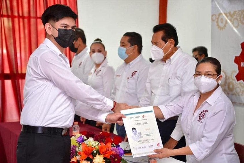 Por Francisco Valdivia: Con la presencia del Ing. Olegario Muñoz Cura representante de la DGETI en Tamaulipas, la Asesora Jurídica del Ayuntamiento Lic. Rebeca Mendoza Garibaldi en representación de la Alcaldesa Nataly García Díaz y la Directora del Plantel Alicia Cortez Chapa, se llevó a cabo la entrega de 58 títulos de Técnico Profesional de la Generación 2018-2021 en las especialidades de Contabilidad, Programación, Electrónica, mantenimiento Automotriz y Soporte y Mantenimiento en Equipo de Cómputo.
