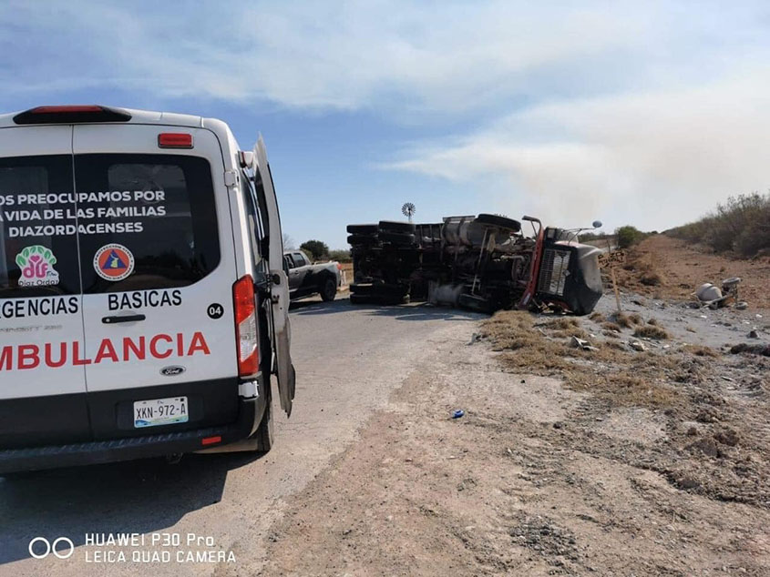 Por Francisco Valdivia: Con serias lesiones resultó el conductor de un tracto camión al volcar la unidad que conducía a la altura del puente angosto ubicado en el camino estatal a los Tres García cerca del poblado Luis Echeverría.