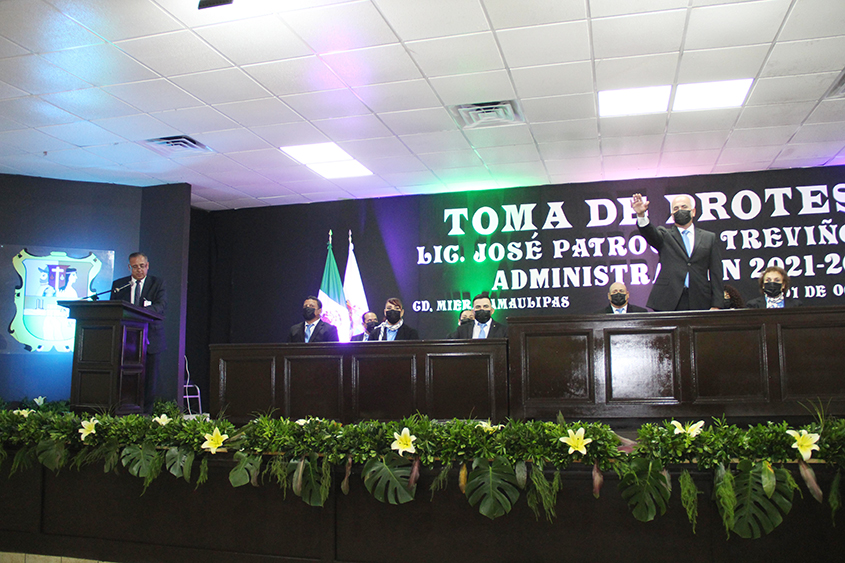El Lic. Raúl Trad González representante del Gobernador Tomo Protesta de Ley al Lic. José Patroclo Treviño Ramos como Presidente Municipal para el Periodo Constitucional 2021-2024 quien protesto hacer guardar la Constitución Política de los Estados Unidos Mexicanos la particular del Estado las leyes que de una u otra emanen y cumplir leal y patrióticamente con los deberes del cargo de Alcalde Municipal que el municipio de Cd. Mier que le confirió el pueblo y de no ser así la nación el estado y el municipio se lo demandaran.