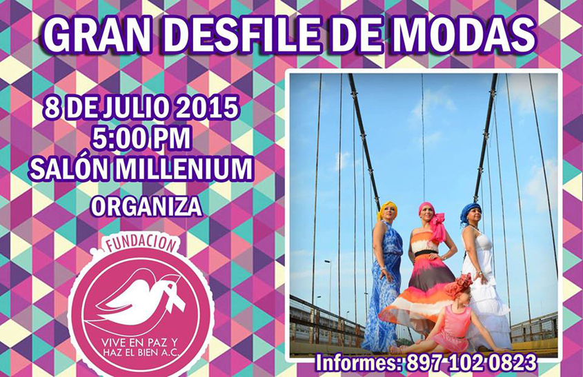 Como ya es sabido la fundación “Vive en Paz y haz el Bien A.C” cada año realiza de manera tradicional un desfile de modas, donde habrá modelos de las diversas tiendas de ropa que estarán patrocinando el evento que es con el objetivo de obtener fondos económicos que llevan beneficio a las personas con cáncer.