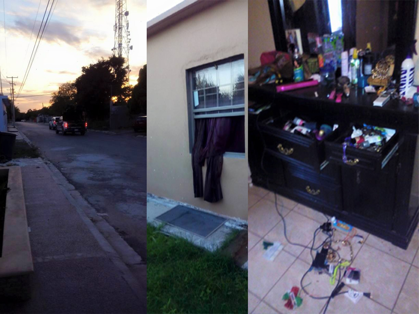 Elementos de la “Fuerza Tamaulipas” se introdujeron por una de las ventanas de las recamaras para posteriormente revisar cajón por cajón dejando a su paso un gran desorden y cosas tiradas en el suelo y causando daños en la puerta de la cocina.