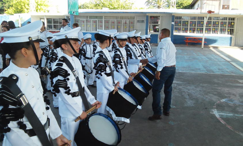 Al regresar de la capital del estado con el segundo lugar, el alcalde Ramiro Cortez asistió a la citada escuela, para participar en los honores a los símbolos patrios, ocasión que le permitió saludar y felicitar a quienes fueron galardonados con el segundo lugar en el concurso de Bandas de Guerra.