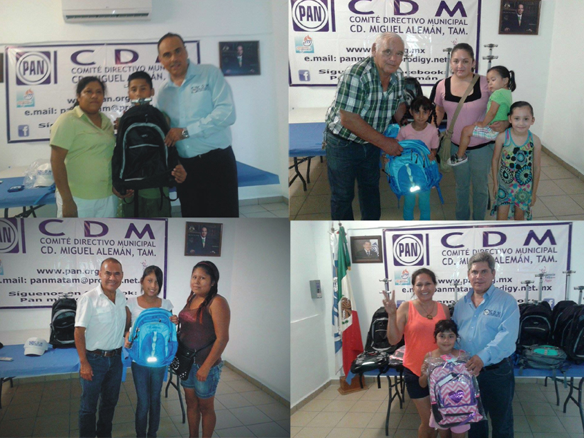 Con motivo del inicio de clases del nuevo ciclo escolar el Comité Directivo Municipal del PAN de Miguel Alemán Tamaulipas se dio a la tarea en días pasados de apoyar a los niños de escasos recursos y más necesitados de nivel primaria con la aportación de casi 40 mochilas escolares.